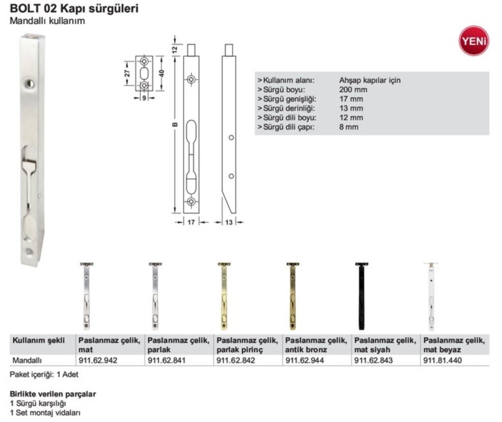 BOLT 02 Sürgü mandalli siyah 17x200mm